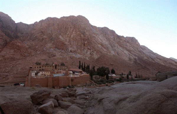 Κάτω από την προστασία της χριστιανικής Αυτοκρατορίας, η Μονή του Σινά γνώρισε άνθηση μεγάλη και χρόνια αδιατάρακτης ειρήνης και ελευθερίας. Η ευτυχία όμως αυτή τελείωσε γρήγορα. Τον 7ο αιώνα ξεχύθηκαν οι Άραβες, με τον προφήτη τους επί κεφαλής, για να κατακτήσουν τον κόσμο. Δεν άργησαν να φτάσουν στην Πετραία Αραβία. Κατά την πάγια παράδοση των Χριστιανών και των Μουσουλμάνων, ο ίδιος ο Μωάμεθ ήρθε στο Σινά για να τιμήσει τη μνήμη του Μωυσή και παραχώρησε στη Μονή τον περίφημο «αχτιναμέ» του, δηλαδή μια διαθήκη γραμμένη σε μεμβράνη, που τη σφράγισε με την παλάμη του. Με το έγγραφο αυτό αναγνώρισε στη Μονή διάφορα προνόμια, που εξασφάλιζαν την ύπαρξή της, και διακήρυξε ότι όποιος Μουσουλμάνος τα παραβιάσει —κατά μετάφραση Κ. Ν. Παπαμιχαλοπούλου— «περιφρονεί την θρησκείαν αυτού —μη γένοιτο, Θεέ!— και καθίσταται άξιος του αναθέματος, είτε βασιλεύς είναι ο τοιούτος παραβάτης είτε πτωχός…»