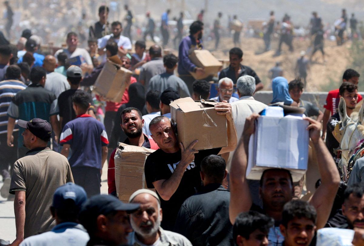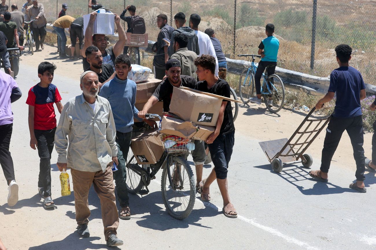 Παλαιστίνιοι μεταφέρουν κούτες με ανθρωπιστική βοήθεια, ωστόσο η ποσότητα που έχει εισέλθει στη Γάζα είναι ανεπαρκής.