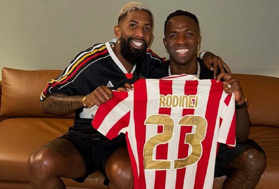 Ο Ροντινέι έχει επιστρέψει στην πατρίδα του για διακοπές. Εκεί, συνάντησε τον Βινίσιους, του χάρισε την επετειακή φανέλα του Ολυμπιακού και πόζαραν μαζί στο instagram, για να αποθανατίσουν το ευχάριστο στιγμιότυπο.