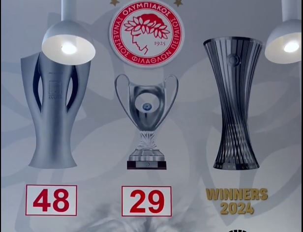 Αξίζει να σημειωθεί πως ο Ολυμπιακός μετά το νέο νταμπλ που έκανε στην Ελλάδα τη φετινή χρονιά με την κατάκτηση του πρωταθλήματος και του Κυπέλλου, έχει πλέον 48 πρωταθλήματα και 29 Κύπελλα.