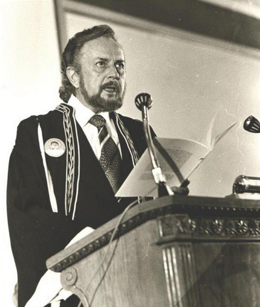 Η Φιλοσοφική Σχολή, θέλοντας να τιμήση και την ομορφιά του λόγου σου και τη δύναμη της καρδιάς σου, αποφάσισε να σε αναγορεύση επίτιμο διδάκτορα της Φιλοσοφίας και να σου προσφέρη όλα τα προνόμια που το αξίωμα τούτο σου δίνει.