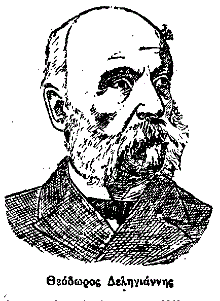 Την επιούσαν εδιάβασα εις την «Πρωίαν» του Δηλιγιάννη κάτι τι το οποίον δι’ υπαινιγμών έθιγε το Βασιλικόν Θέατρον καιρίως. Εζήτησα αμέσως ακρόασιν από τον αείμνηστον Δηλιγιάννην· διά μέσου του Πάνου Μπασιάκου. Ο Θεόδωρος Δηλιγιάννης, αρχηγός τότε της αντιπολιτεύσεως, ήτο στενός φίλος του Μιστριώτου. Του παρεπονέθην διά το αρθρίδιον της «Πρωίας», εφόσον τας ενεργείας του Μιστριώτου και τας σκέψεις του ήρχετο να υιοθετήση ένα μεγάλο κόμμα του τόπου, το δηλιγιαννικόν. Ο Δηλιγιάννης, ευμενέστατος και ευγενέστατος, μου εδήλωσε ότι δεν είχεν αναγνώση το περί ου ο λόγος αρθρίδιον· και διά γενικωτάτων και αορίστων φράσεων με άφησε να εννοήσω ότι δεν του ήτο δυνατόν να έλθη εις σύγκρουσιν γνωμών προς τον Μιστριώτην· αλλ’ ούτε θα επεθύμει το παράπαν (σ.σ. καθόλου) να με βλάψη προσωπικώς ή να τεθή η «Πρωία» επί κεφαλής κινήσεως εναντίον του Βασιλικού Θεάτρου.