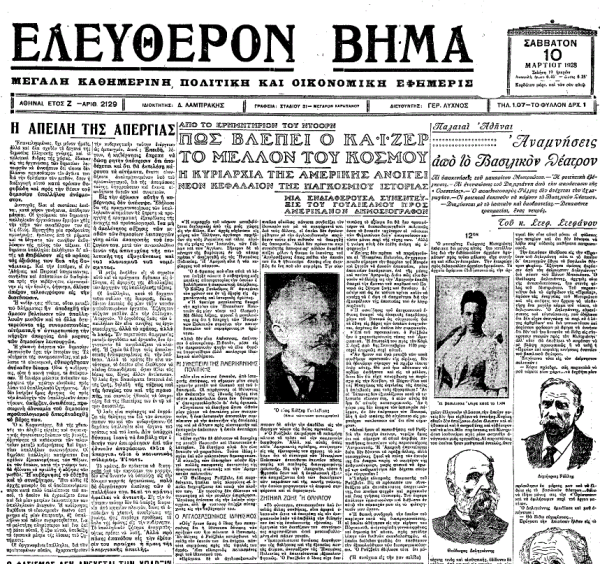 *Κείμενο του Στέφανου Στεφάνου, επιφανούς δημοσιογράφου, θεατρικού συγγραφέα και λογοτέχνη, που είχε δημοσιευτεί στην εφημερίδα «Ελεύθερον Βήμα» το Σάββατο 10 Μαρτίου 1928.