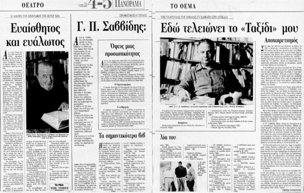 Στην ώρα της οδύνης είναι δύσκολο να βάλεις σε τάξη τη σκέψη σου. Δυσκολότερο να ελέγξεις τον τόνο αυτών που θα πεις, μια και η σκιά του ανθρώπου για τον οποίο γράφεις γίνεται εντονότερη τώρα με την απουσία. Όσα φέρνει στην επιφάνεια η πλημμύρα της μνήμης είναι προσωπικά, αμετάδοτα και, τελικώς, ιδιωτικά. Δεν είναι ο τόνος που θα ταίριαζε για την περίπτωση του Γ. Π. Σαββίδη — πάντα τον ενοχλούσαν οι υπερθετικές εκδηλώσεις αγάπης και θαυμασμού, ακόμη κι αν ήταν άδολες και ανυπόκριτες.