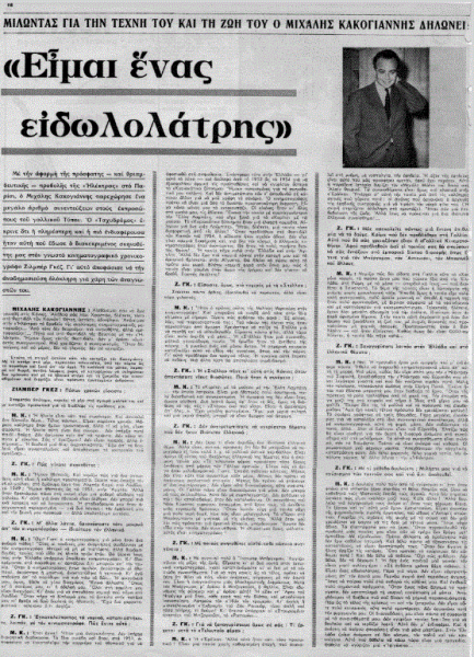 Με αφορμή τη θριαμβευτική προβολή της «Ηλέκτρας» στο Παρίσι, ο Κακογιάννης είχε παραχωρήσει σειρά συνεντεύξεων στους εκπροσώπους του γαλλικού Τύπου. Μία από αυτές, την πληρέστερη και πλέον ενδιαφέρουσα, κατά την άποψη των υπευθύνων του τουλάχιστον, είχε παρουσιάσει «Ο Ταχυδρόμος» στο τεύχος του που είχε κυκλοφορήσει στις 10 Νοεμβρίου 1962.