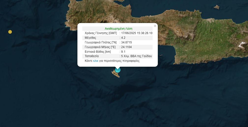 Συγκεκριμένα, ο σεισμός είχε επίκεντρο 5 χλμ βόρεια βορειοδυτικά της Γαύδου.