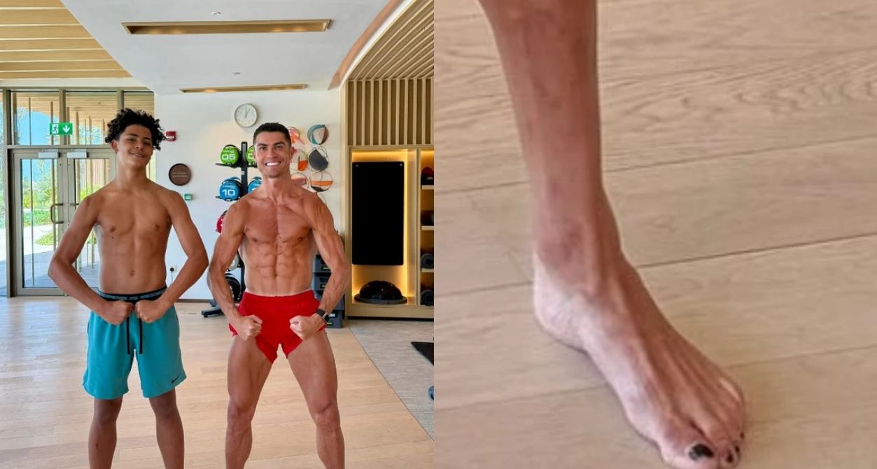 Ο Πορτογάλος στράικερ εμφανίστηκε ημίγυμνος δίπλα στον γιο του και δημοσίευσε τη φωτογραφία στο Instagram, με πολύ κόσμο να παρατηρεί ότι ο «CR7» είχε ένα κατάμαυρο νύχι στο αριστερό του πόδι, κάτι ωστόσο που έχει εξήγηση.