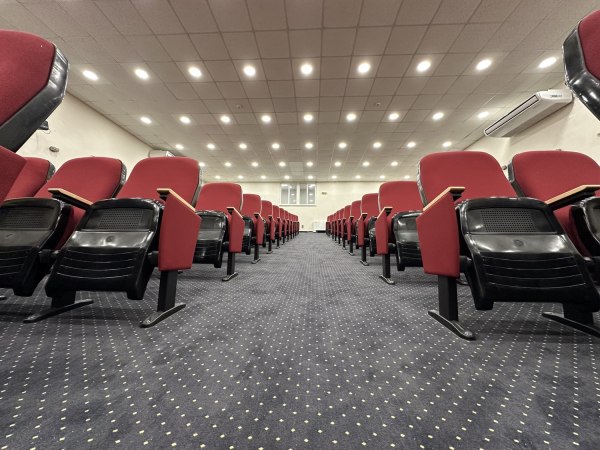 Μεγάλες αλλαγές όμως πραγματοποιήθηκαν και στην ανακαινισμένη αίθουσα εκδηλώσεων, στην οποία πλέον έχουν τοποθετηθεί καινούρια καθίσματα, μοκέτα δαπέδου και κουρτίνα σκηνής με αυτόματο χειρισμό.