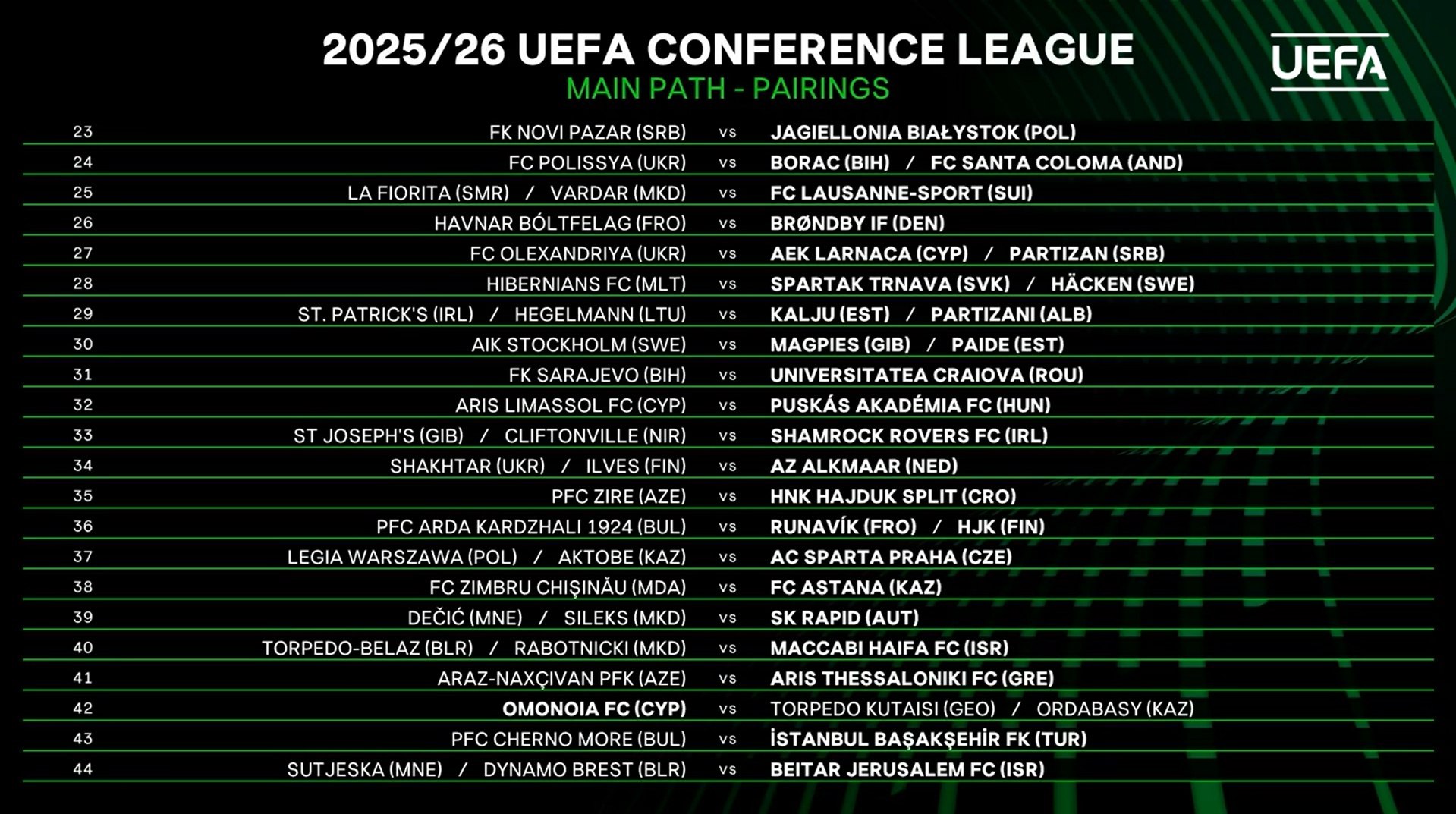 Η ΑΕΚ έμαθε τον αντίπαλό της στον δεύτερο προκριματικό γύρο του Conference League, ο οποίος θα είναι ο ηττημένος του ζευγαριού Λέφσκι Σόφιας – Χαποέλ Μπερ Σεβά.