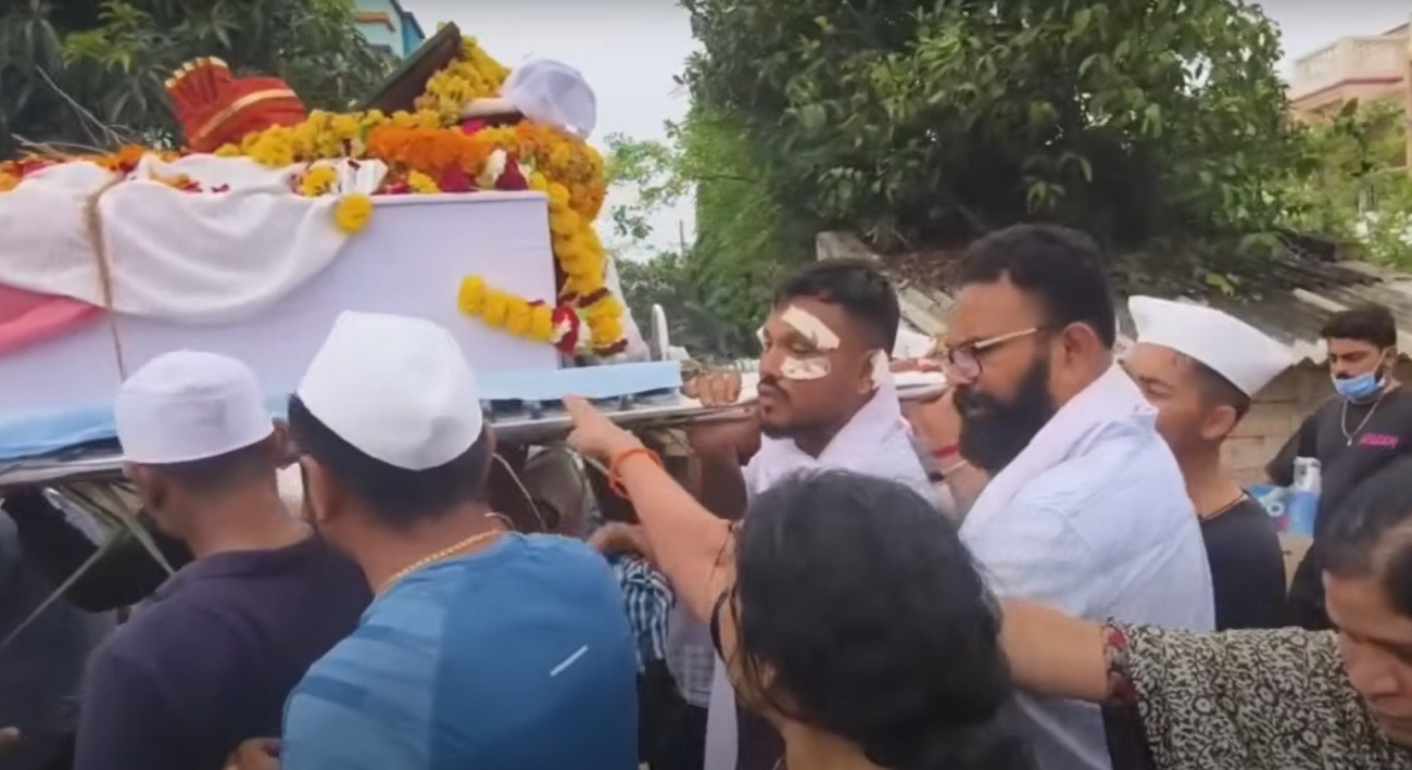 Οι δρόμοι γέμισαν με πενθούντες καθώς ο Ramesh περπατούσε με το φέρετρο του αδελφού του στους ώμους, με τη μητέρα του δίπλα του, ντυμένη με ένα μπλε σάρι, βρεγμένο από τη βροχή του μουσώνα.