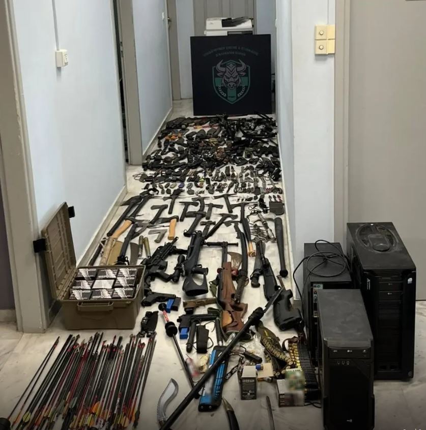 Δυναμίτες, όπλα, σπαθιά, εκατοντάδες τσεκούρια και μαχαίρια, αλλά και 740 σφαίρες, είναι μερικά από τα ευρήματα της αστυνομίας στο σπίτι του 42χρονου