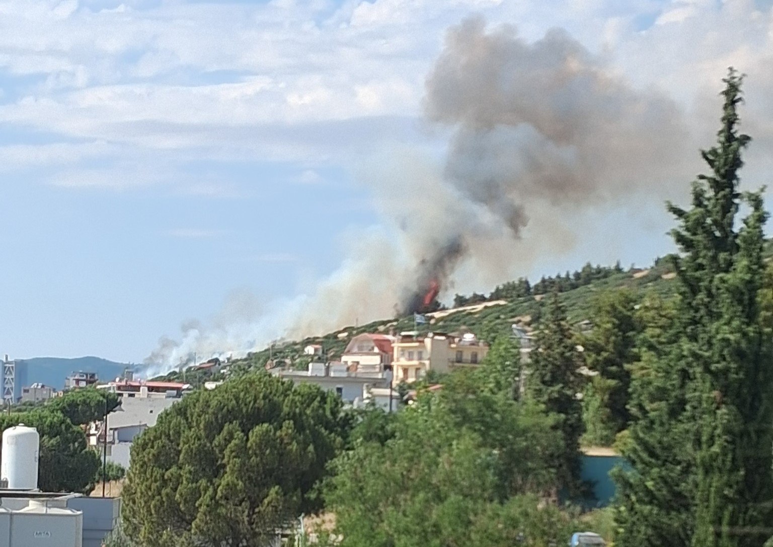 Σύμφωνα με τις πρώτες πληροφορίες η φωτιά καίει δασική έκταση και βρίσκεται κοντά σε σπίτια.