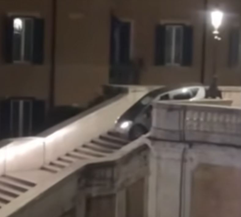Πριν λίγες μέρες ένας άνδρας στη Ρώμη βρήκε καλή ιδέα να κατέβει τα Ισπανικά Σκαλιά με το αυτοκινητό του. Βίντεο δείχνει την απίστευτη σκηνή το όχημα αργά-αργά προσπαθεί να φτάσει στο τέλος της σκάλας.