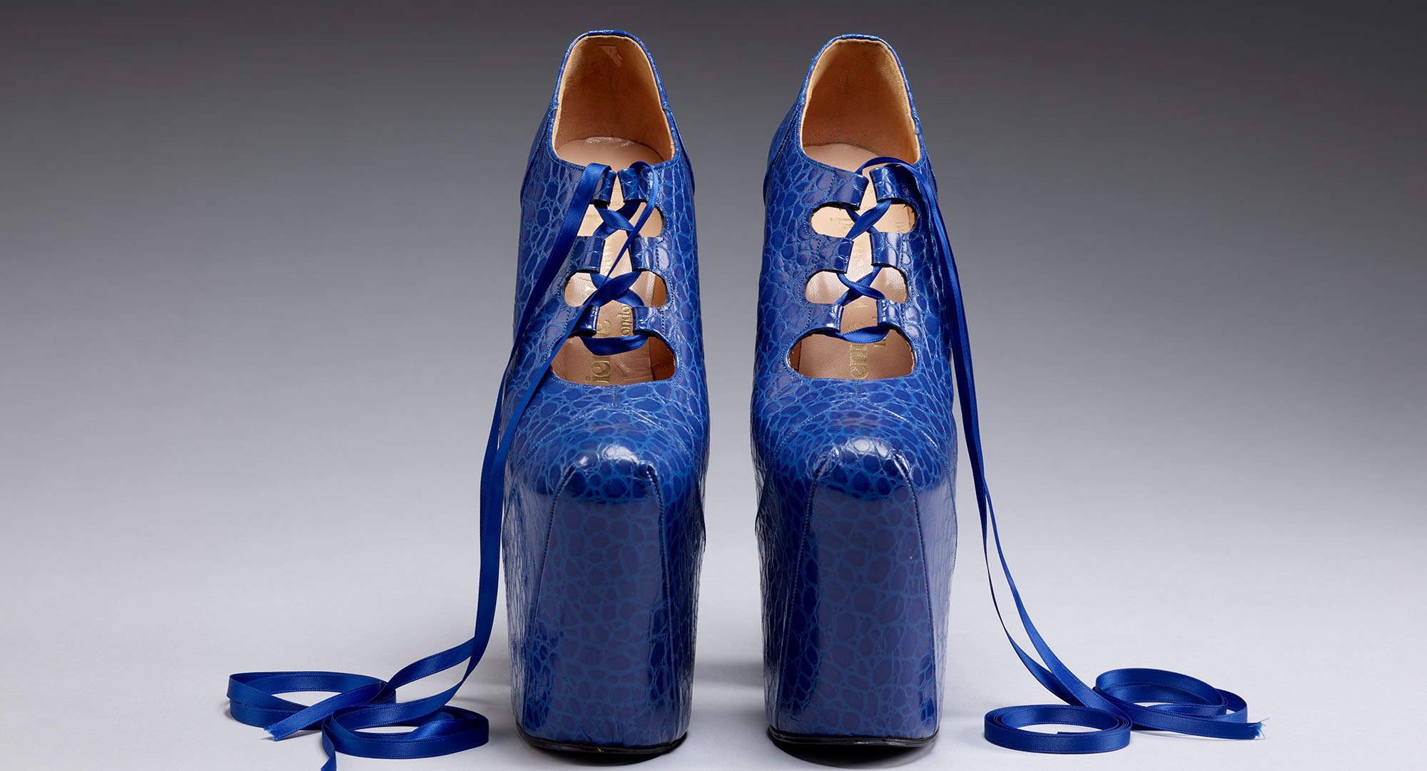 Τα ψηλά αυτά παπούτσια, φτιαγμένα από απομίμηση δέρματος κροκόδειλου και δεμένα με μεταξωτές κορδέλες γύρω από τον αστράγαλο, ήταν εμπνευσμένα από σχέδια του 18ου και 19ου αιώνα. Το διάσημο ζευγάρι της Κάμπελ, που σήμερα φιλοξενείται στο Μουσείο Victoria & Albert του Λονδίνου, είναι ευδιάκριτο: το όνομά της, Naomi, είναι γραμμένο στην εσωτερική σόλα με μπλε στυλό διαρκείας.