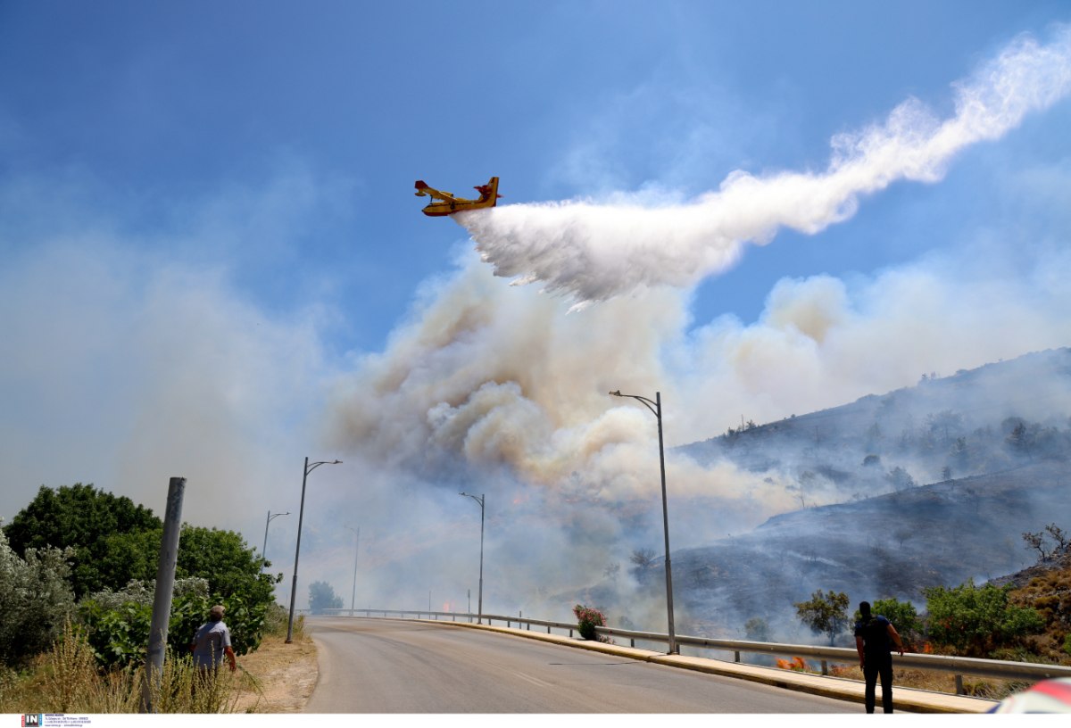 Η φωτιά εξακολουθεί να μαίνεται ανεξέλεγκτη, ενώ ισχυροί άνεμοι στην περιοχή δυσχεραίνουν το έργο των πυροσβεστικών δυνάμεων.