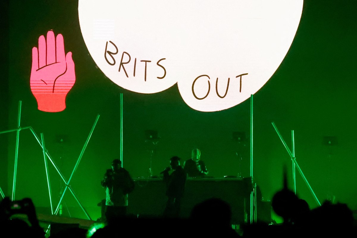 Οι Kneecap στη σκηνή του μουσικού φεστιβάλ Fairview Park, στο Δουβλίνο της Ιρλανδίας, 19 Ιουνίου 2025. REUTERS/Clodagh Kilcoyne