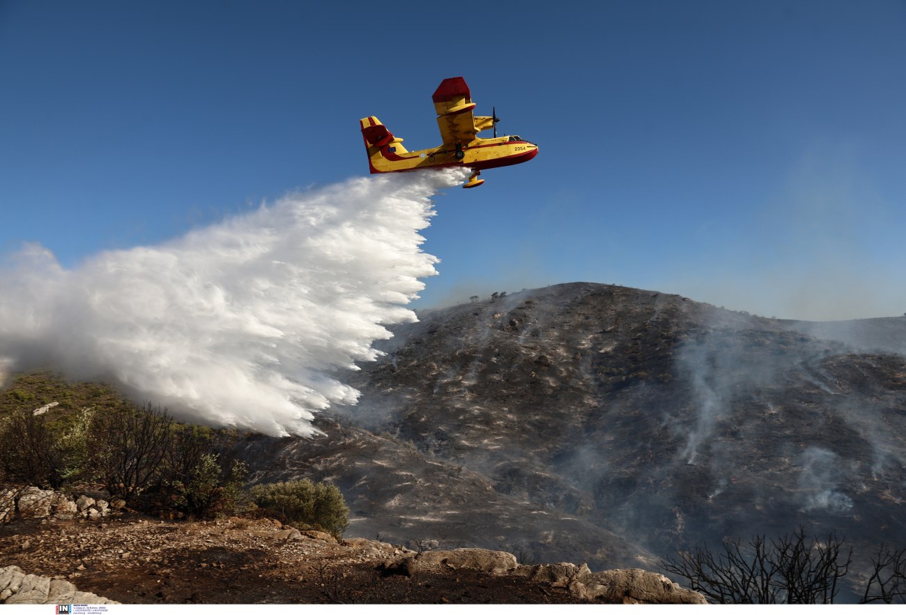 Για την κατάσβεση της φωτιάς από αέρος επιχειρούν δύο αεροσκάφη.