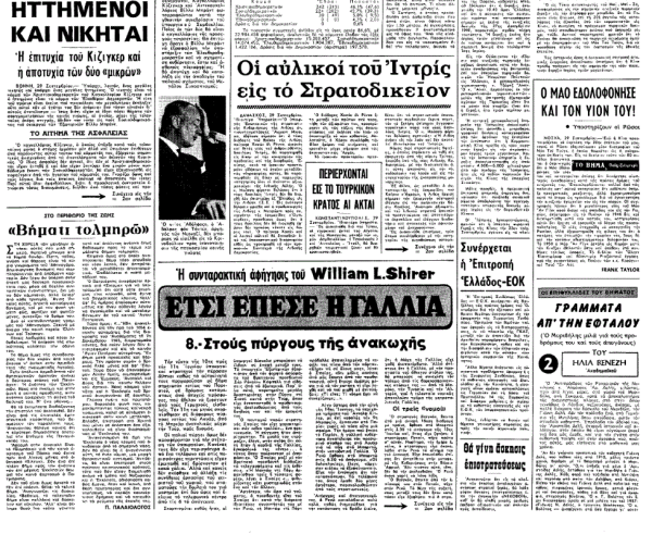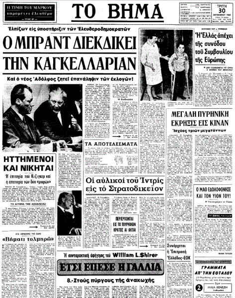 «ΤΟ ΒΗΜΑ», 30.9.1969, Ιστορικό Αρχείο «ΤΟ ΒΗΜΑ» & «ΤΑ ΝΕΑ»
