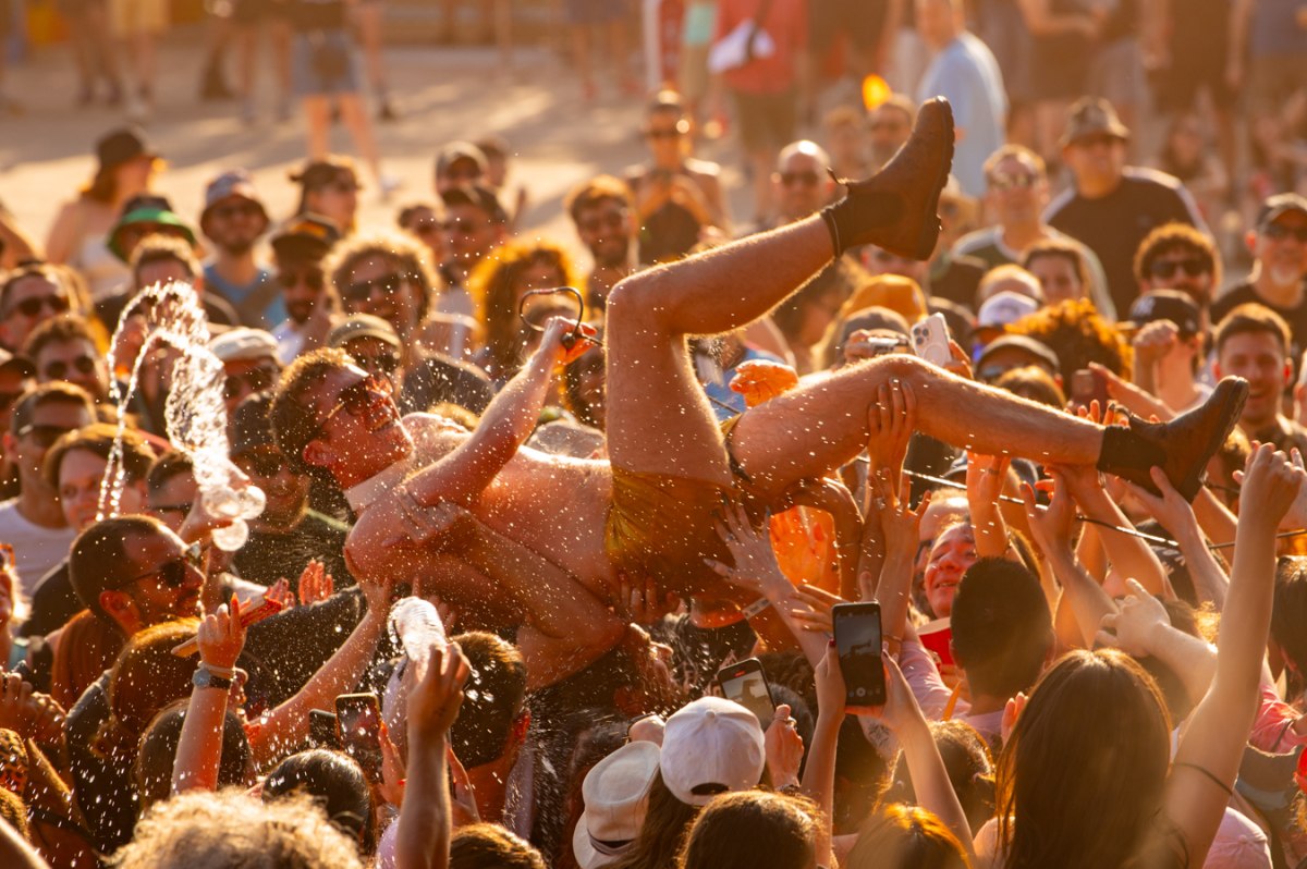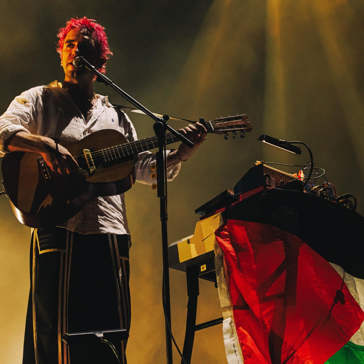 Και λίγο μετά τις 9.30 το βράδυ η σκηνή του Release Athens πέρασε στα χέρια των Fontaines DC. Με τη σημαία της Παλαιστίνης να έχει μπει στη θέση της από νωρίς, ο Grian Chatten ήταν καταιγιστικός με το που εμφανίστηκε μπροστά στους χιλιάδες που είχαν γεμίσει την πλατεία Νερού. Ειλικρινά και δεν ξέρω γιατί, δεν περίμενα ότι έχουν τόσο μεγάλο γκελ στο ελληνικό κοινό.