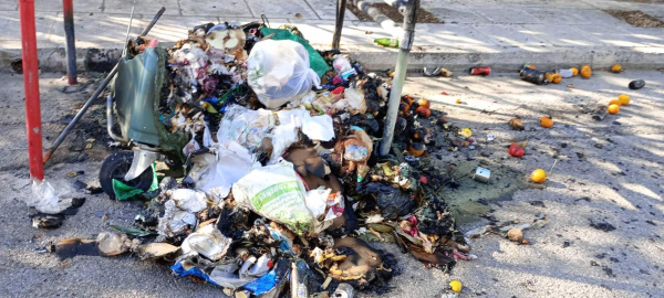 Ο Δήμος Βύρωνα καταγγέλλει νέο περιστατικό βανδαλισμού και εμπρησμού κάδων στην οδό Φρυγίας.