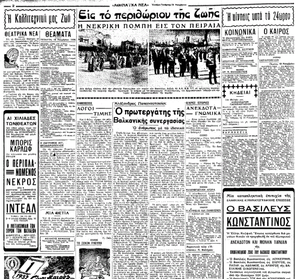 «ΑΘΗΝΑΪΚΑ ΝΕΑ», 18.11.1936, Ιστορικό Αρχείο «ΤΟ ΒΗΜΑ» & «ΤΑ ΝΕΑ»