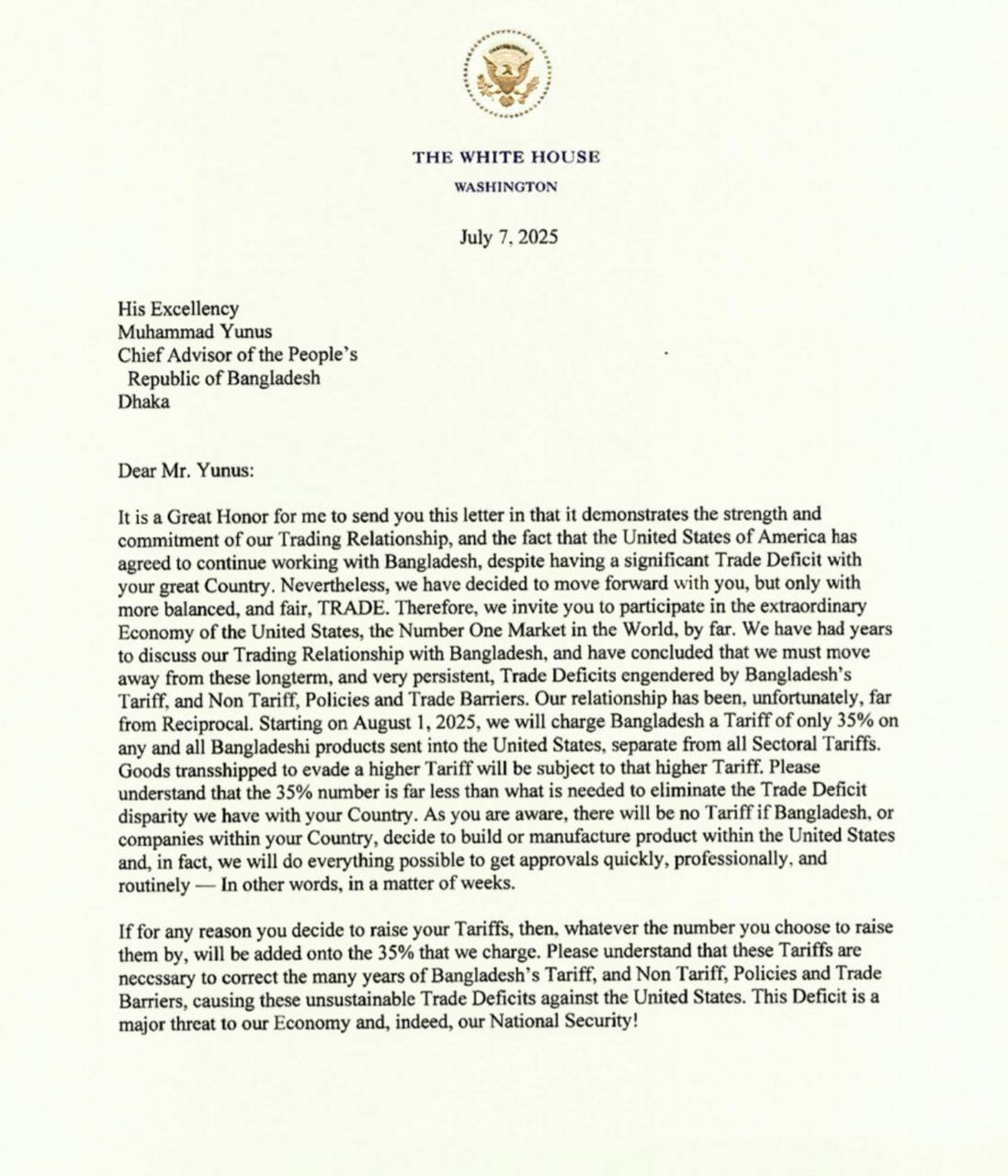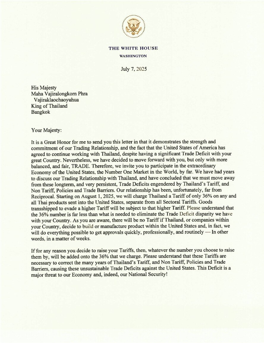 Οι επίσημες επιστολές υποστηρίζουν ότι οι νέοι δασμολογικοί συντελεστές είναι απαραίτητοι για να διορθωθούν τα συνεχιζόμενα εμπορικά ελλείμματα των ΗΠΑ με τις 14 χώρες.