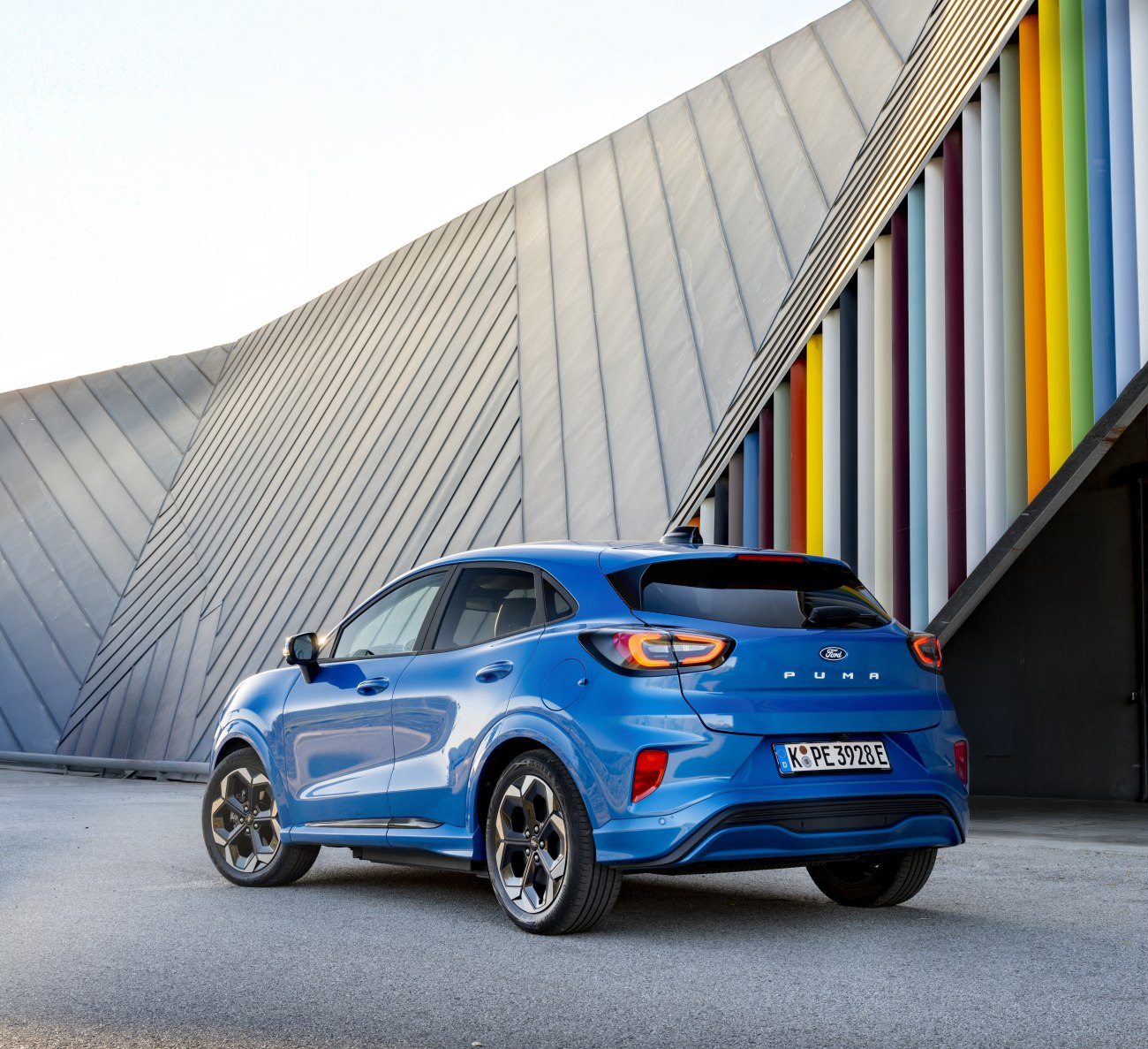 Ξεκινώντας από τη σχεδίαση το Puma Gen-E είναι άμεσα αναγνωρίσιμο ως μέλος της οικογένειας του Puma αλλά και ταυτόχρονα διαφορετικό χάρη στις αισθητικές επιρροές από την επιβλητική Mustang Mach-E στο μπροστινό τμήμα του με την κλειστή γρίλια και το χαρακτηριστικό μοτίβο στα LED φώτα, αλλά και από το γεγονός ότι οι λεπτομέρειες αντλούνται από το κορυφαίο εξοπλιστικό επίπεδο ST Line.