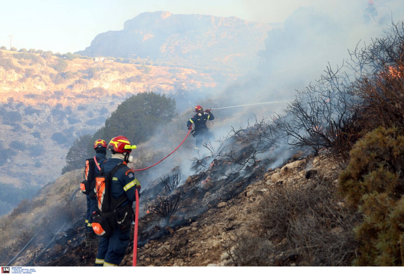 Η φωτιά καίει χαμηλή βλάστηση και στο σημείο επιχειρούν 24 πυροσβέστες με 8 οχήματα.