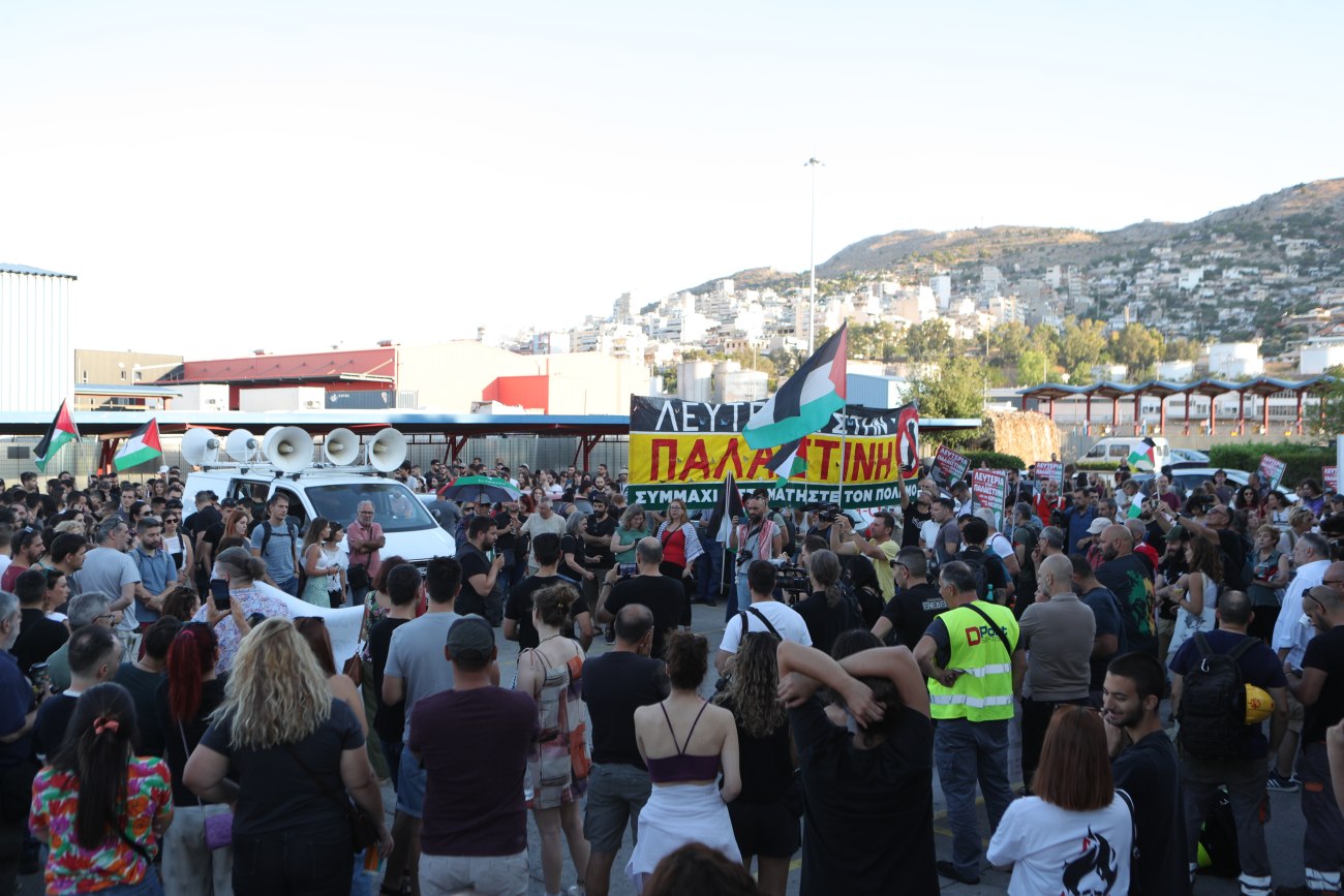 Μαζική συγκέντρωση πραγματοποιήθηκε τα ξημερώματα της Δευτέρας στις προβλήτες 2 και 3 της Cosco, μετά από κάλεσμα της Ένωσης Εργαζομένων Διακίνησης Εμπορευματοκιβωτίων στις προβλήτες του Πειραιά (ΕΝΕΔΕΠ) ενάντια στην αποστολή στρατιωτικού υλικού στο Ισραήλ που συνεχίζει τον πόλεμό του στη Γάζα.