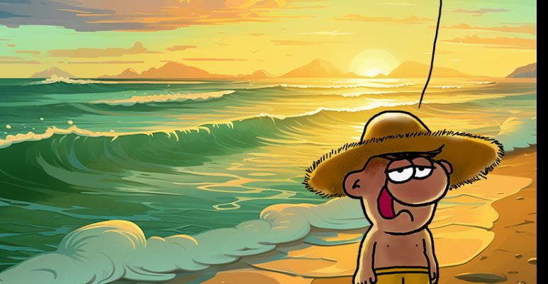 Ο Αρκάς στο σημερινό σκίτσο του μας δείχνει τον μικρό Θανασάκη να βρίσκεται σε μια παραλία με ηλιοβασίλεμα και να λέει: «Μ’ αρέθουθ οι ανατολέθ! Έχουν ίδιο χρώμα με τιθ τηγανητέθ πατάτεθ».