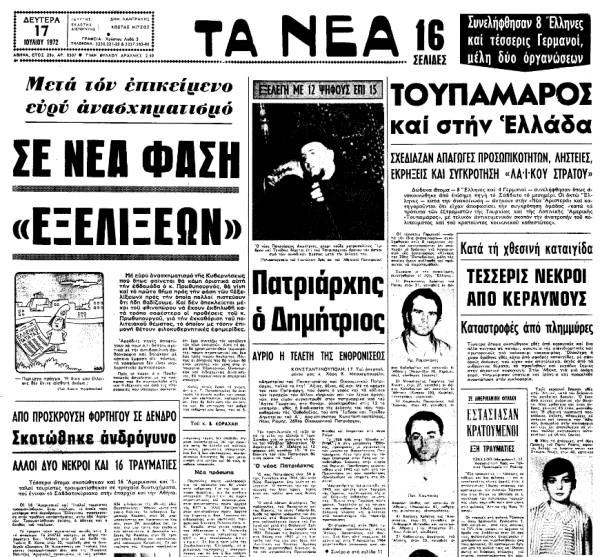 «ΤΑ ΝΕΑ», 17.7.1972, Ιστορικό Αρχείο «ΤΟ ΒΗΜΑ» & «ΤΑ ΝΕΑ»