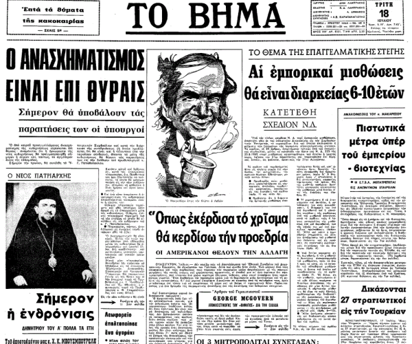 «ΤΟ ΒΗΜΑ», 18.7.1972, Ιστορικό Αρχείο «ΤΟ ΒΗΜΑ» & «ΤΑ ΝΕΑ»