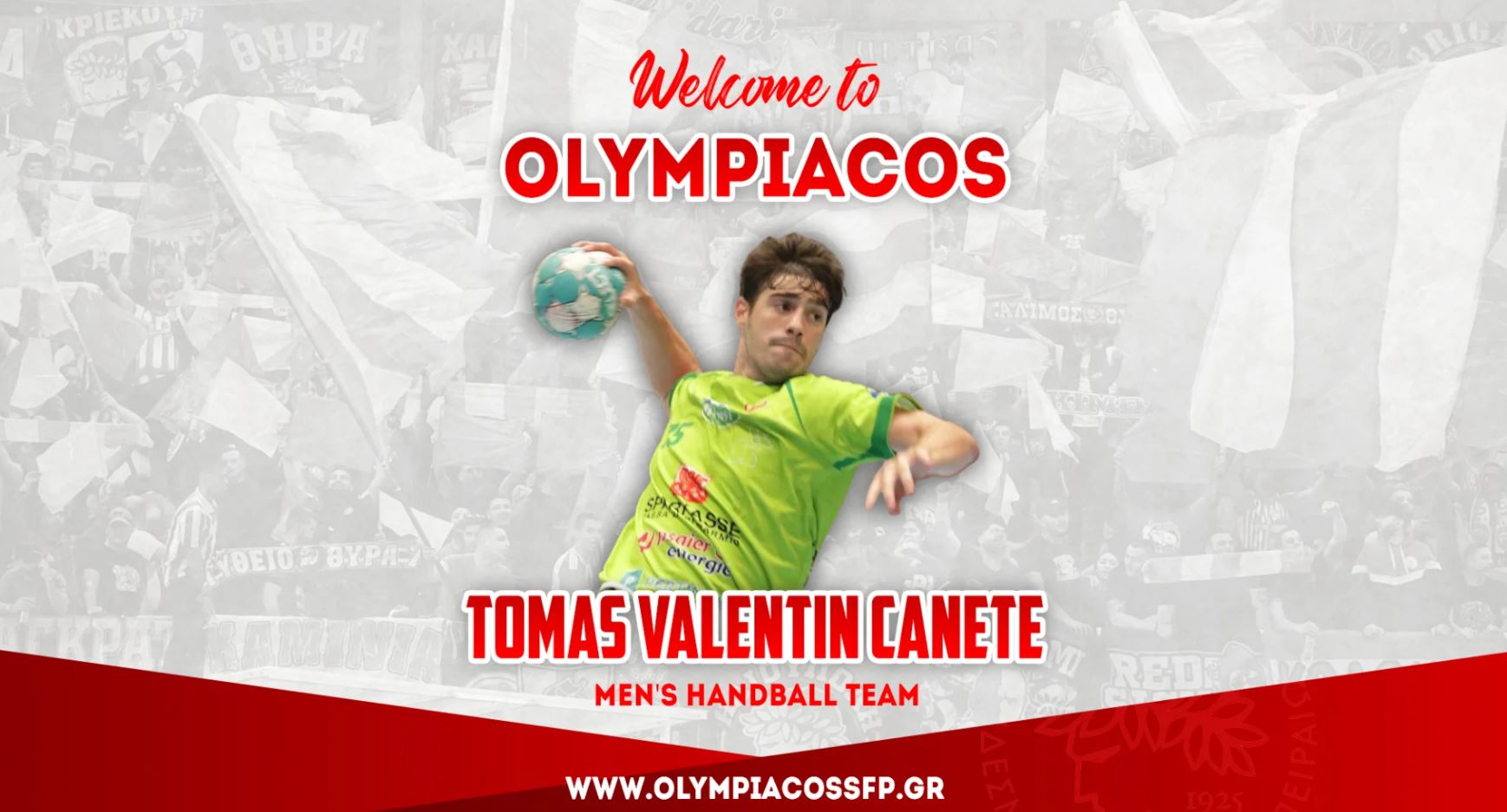 «Ο ΟΛΥΜΠΙΑΚΟΣ Σ.Φ.Π. ανακοινώνει την έναρξη της συνεργασίας του με τον Τόμας Βαλεντίν Κανιέτε. Ο διεθνής Αργεντινός, με ιταλικό διαβατήριο, play maker (ημ. γέννησης 14/1/1999, 1,88μ.) υπέγραψε το νέο του συμβόλαιο και εντάσσεται στο ρόστερ της ομάδας χάντμπολ του συλλόγου.