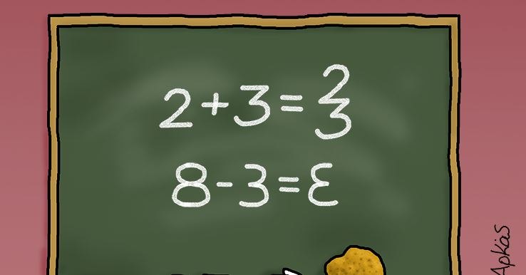 Ο Αρκάς στο σημερινό σκίτσο του συνδυάζει την καλημέρα του με την παρότρυνση: «Σκέψου αλλιώς» και παρουσιάζει κάποιες μαθηματικές πράξεις.