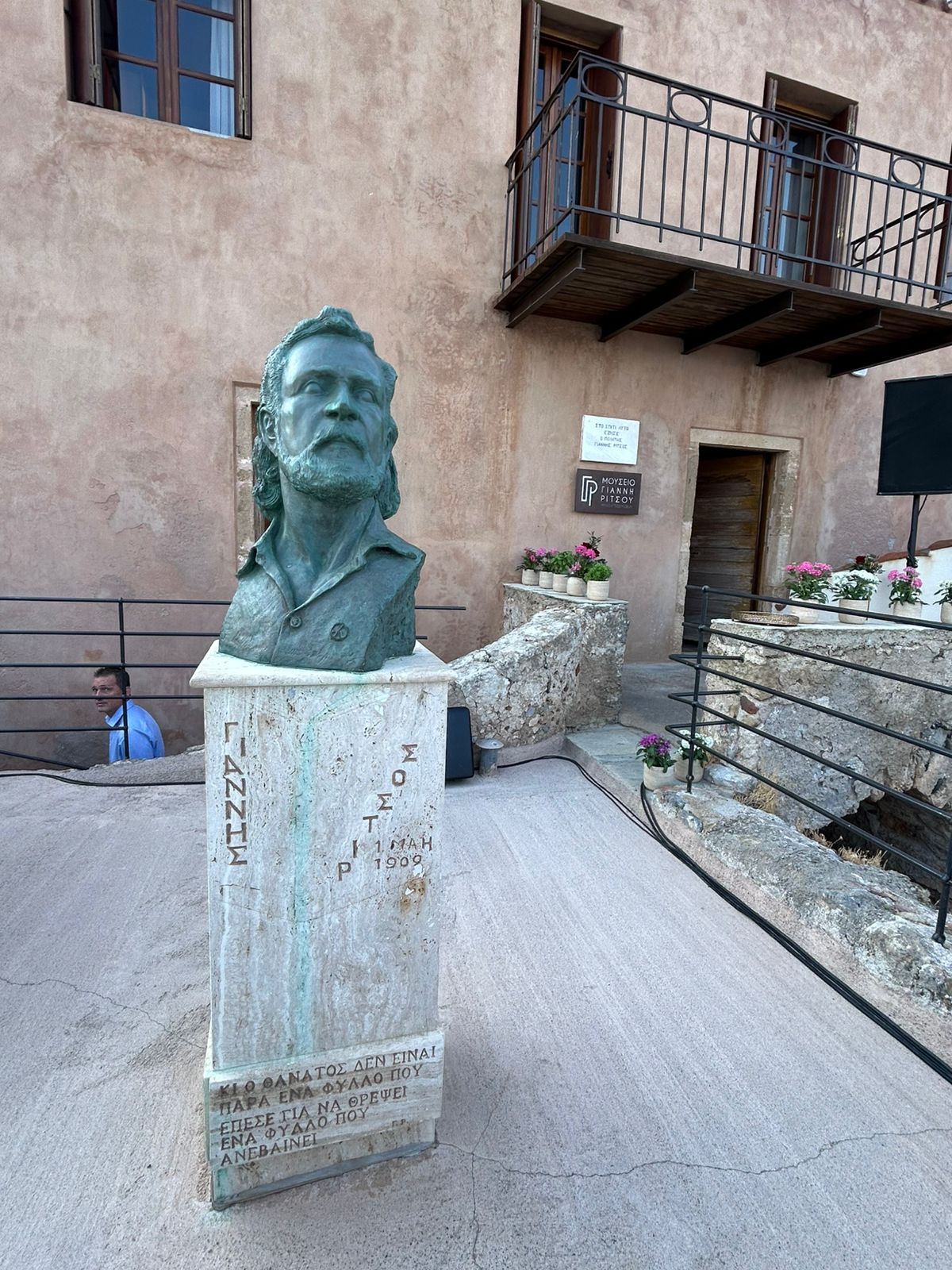 Όπως επεσήμανε η Υπουργός Πολιτισμού, όσον αφορά στην αγάπη που είχε ο Ρίτσος για την ιδιαίτερη πατρίδα του, «ένα από τα δίπολα της ποίησής του ήταν η θάλασσα από τη μια, και από την άλλη, αυτός ο ασάλευτος βράχος.