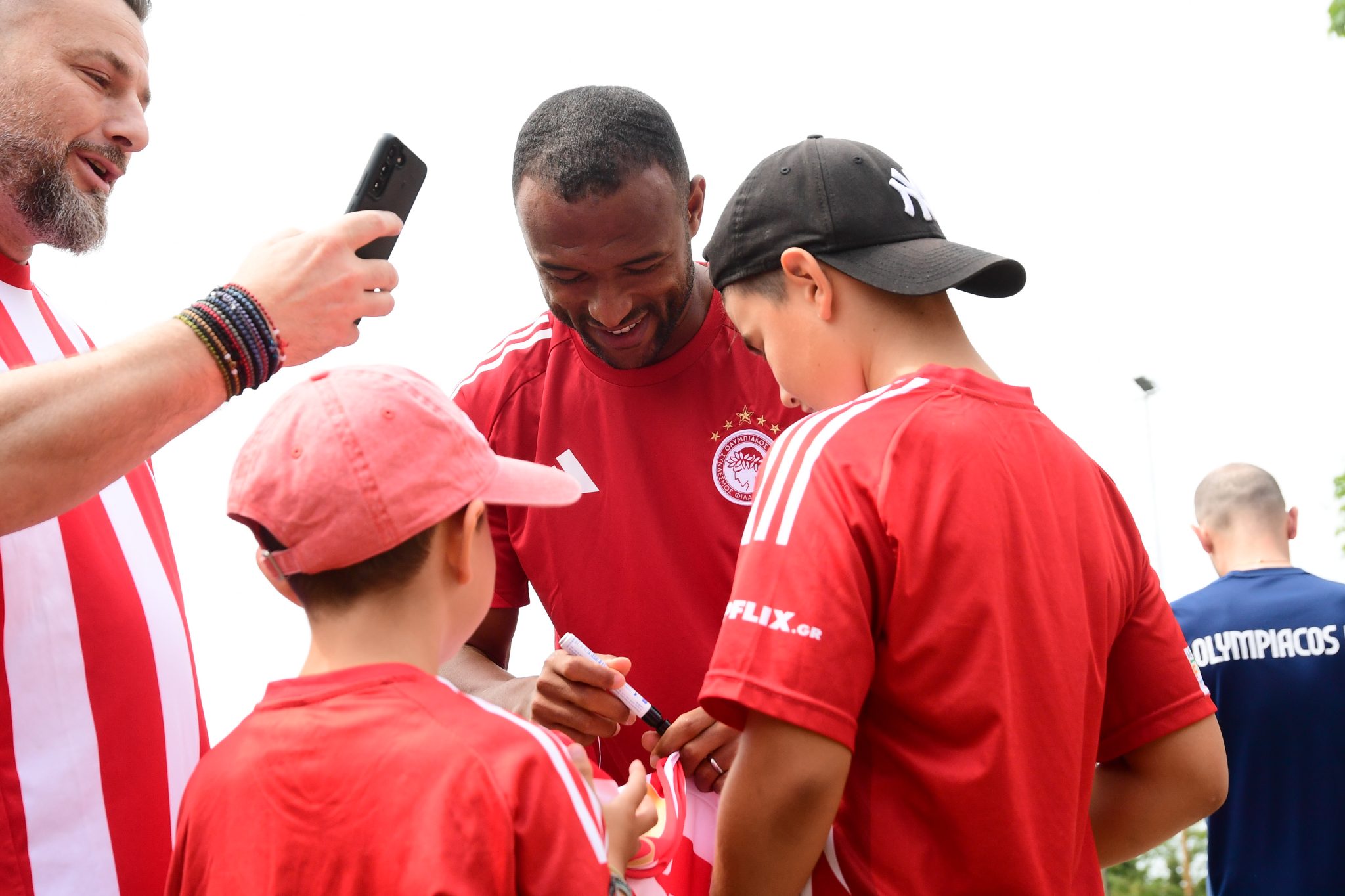 Αρκετή ώρα πριν από τη σέντρα, οι φίλοι των Πειραιωτών βρέθηκαν στο γήπεδο και φωτογραφήθηκαν με ποδοσφαιριστές της ομάδας. Παράλληλα, οι «ερυθρόλευκοι» πραγματοποιούσαν και την προθέρμανσή τους ενόψει του ματς.