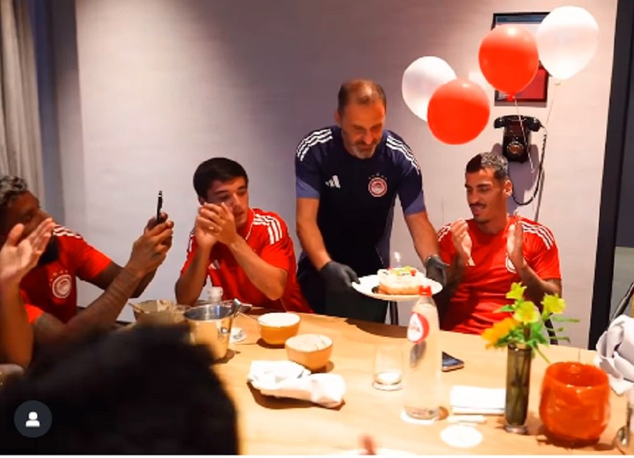 Αμέσως ακολούθησε θερμό χειροκρότημα από όλους τους συμπαίκτες του, αλλά και το καθιερωμένο «Happy Birthday».