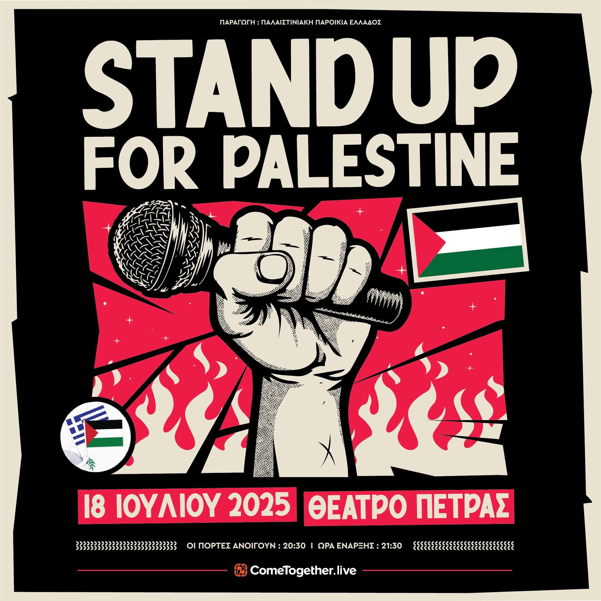 Ένας καταιγισμός αλληλεγγύης και γέλιου πλημμύρισε το Θέατρο Πέτρας στην Αθήνα, στα πλαίσια της εκδήλωσης Stand up for Palestine.