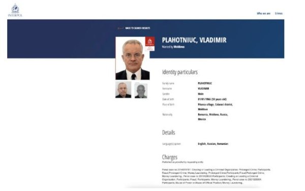 «Πριν από λίγο, η επίσημη αντιπροσωπεία της Ιντερπόλ στην Αθήνα μας ενημέρωσε ότι δύο πολίτες της Μολδαβίας έχουν συλληφθεί. Ο ένας από αυτούς είναι ο Βλαντιμίρ Πλαχοτνιούκ», αναφέρεται στην ανακοίνωση. Ο αρχηγός της Εθνικής Αστυνομίας, επιβεβαίωσε ότι η σύλληψη έλαβε χώρα την Τρίτη. «Τα δύο άτομα διέρχονταν από την Ελλάδα, με προορισμό το Ντουμπάι», δήλωσε ο αξιωματούχος στο TV8.