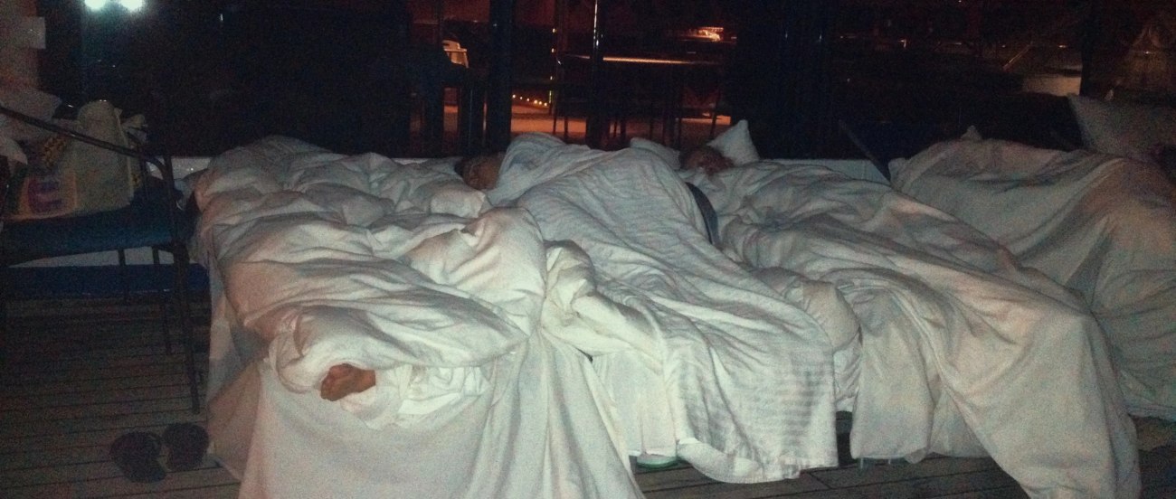 «Μέσα στο σκάφος ήταν ακόμη χειρότερα. Εννοώ ότι θα πνιγείς μέσα σε λίγα λεπτά, επειδή δεν υπάρχει καθόλου αέρας» λέει ο Λάρι. Καθώς πλησίαζε η νύχτα, οι επιβάτες άρχισαν να στήνουν κρεβάτια έξω. Η ταινία δείχνει ανθρώπους να σέρνουν στρώματα στις σκάλες, να κοιμούνται σε κοινόχρηστους χώρους ή να καταλαμβάνουν ξαπλώστρες.