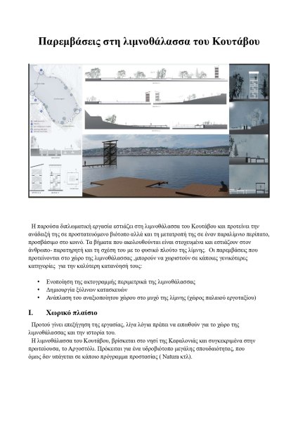 Η διπλωματική εργασία της Άννας Μαρίας Νάτση, η οποία δημοσιεύθηκε πριν από μερικές ημέρες σε τοπικό μέσο, αναλύει τις περιβαλλοντικές και κοινωνικές διαστάσεις της λιμνοθάλασσας του Κουτάβου, προτείνοντας λύσεις που συνδυάζουν την οικολογική ισορροπία με την ανάπτυξη της περιοχής.