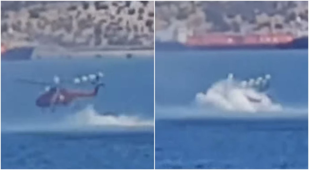 Βίντεο που κόβει την ανάσα ήρθε στο φως της δημοσιότητας, από την αναγκαστική προσθαλάσσωση πυροσβεστικού ελικοπτέρου – μεταξύ αυτών που μισθώνει η Π.Υ. – τη στιγμή που επιχειρούσε υδροληψία στην Ελευσίνα. Το ελικόπτερο τύπου Erickson, το οποίο συνετρίβη μετά την προσθαλάσσωση στον κόλπο της Ελευσίνας, συμμετείχε στην επιχείρηση κατάσβεσης της πυρκαγιάς στον Ασπρόπυργο.
