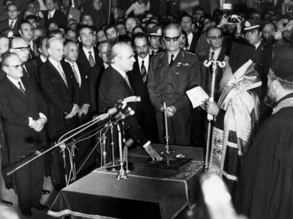 «Ο πρώην πρωθυπουργός της Ελλάδος κ. Κωνσταντίνος Καραμανλής ανεχώρησε ήδη εκ Παρισίων δι’ Αθήνας, κληθείς όπως μετάσχη εις την σύσκεψιν των πολιτικών αρχηγών, την οποίαν συνεκάλεσεν ο Πρόεδρος της Δημοκρατίας, στρατηγός Φαίδων Γκιζίκης».