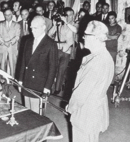 Στο μεταξύ είχε αρχίσει η σύσκεψη της πολιτικής και της στρατιωτικής ηγεσίας στο Γραφείο του Προέδρου της Δημοκρατίας, που οδήγησε στο σχηματισμό της πολιτικής κυβερνήσεως.
