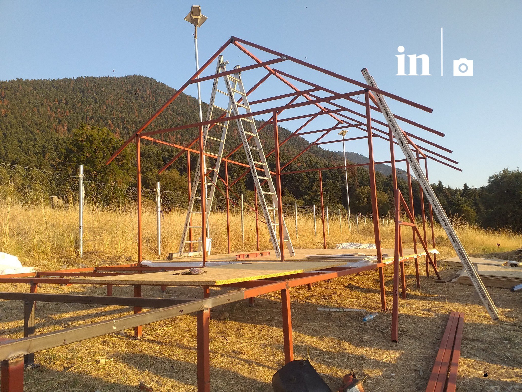 Ωστόσο όπως φαίνεται από τις φωτογραφίες που παρουσιάζει το in, στον συγκεκριμένο χώρο είχε εγκαταστήσει σιδηροκατασκευές καθώς και δύο τροχόσπιτα που τα χρησιμοποιούσε ως χώρους διαμονής και αποθήκευσης εργαλείων.