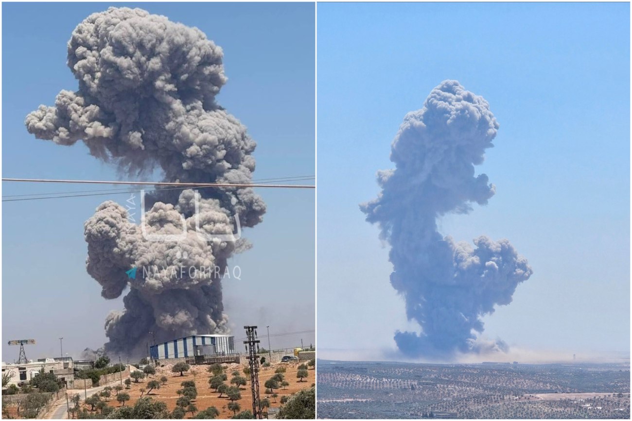 A massive explosion has occurred in the town of Al-Fu’ah, Idlib Governorate, northwestern Syria. Reports suggest that it is from an ammunition depot. pic.twitter.com/TyAWucU8v5