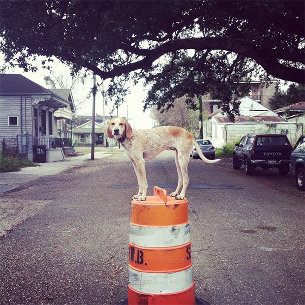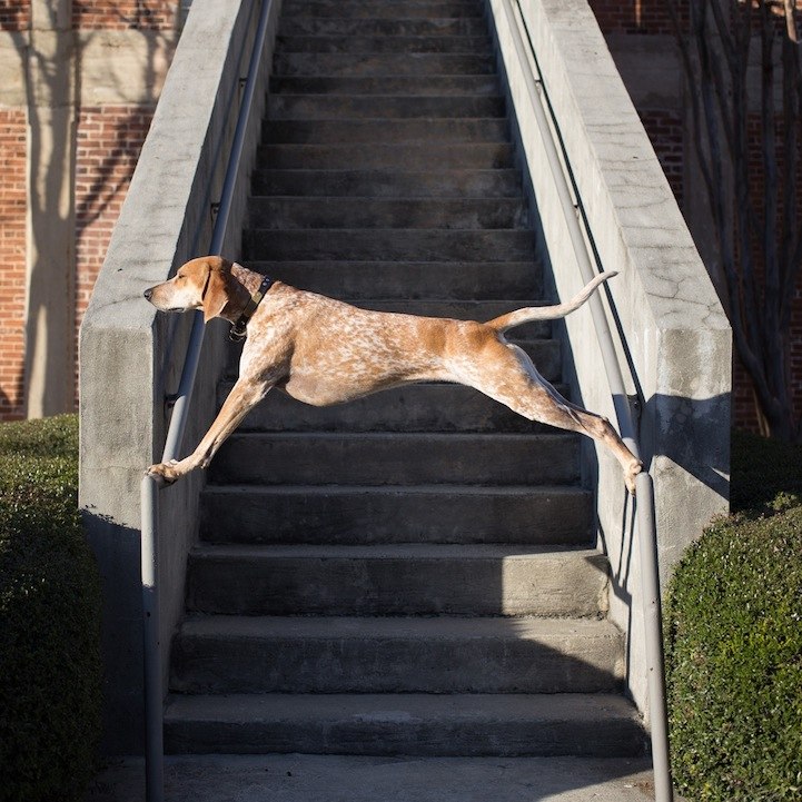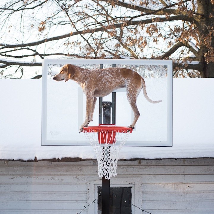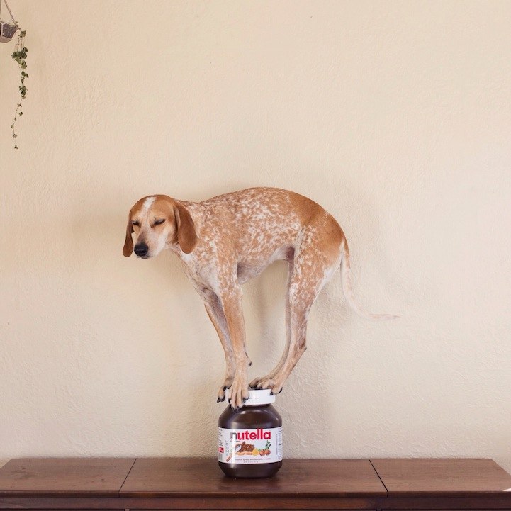 Η Μάντι, το Αγγλικό κυνηγόσκυλο ράτσας κούνχαουντ ήξερε πώς να τραβήξει την προσοχή του κόσμου. Ισορροπώντας με χαρακτηριστική ευκολία και αυθόρμητη χάρη επάνω σε αντικείμενα.