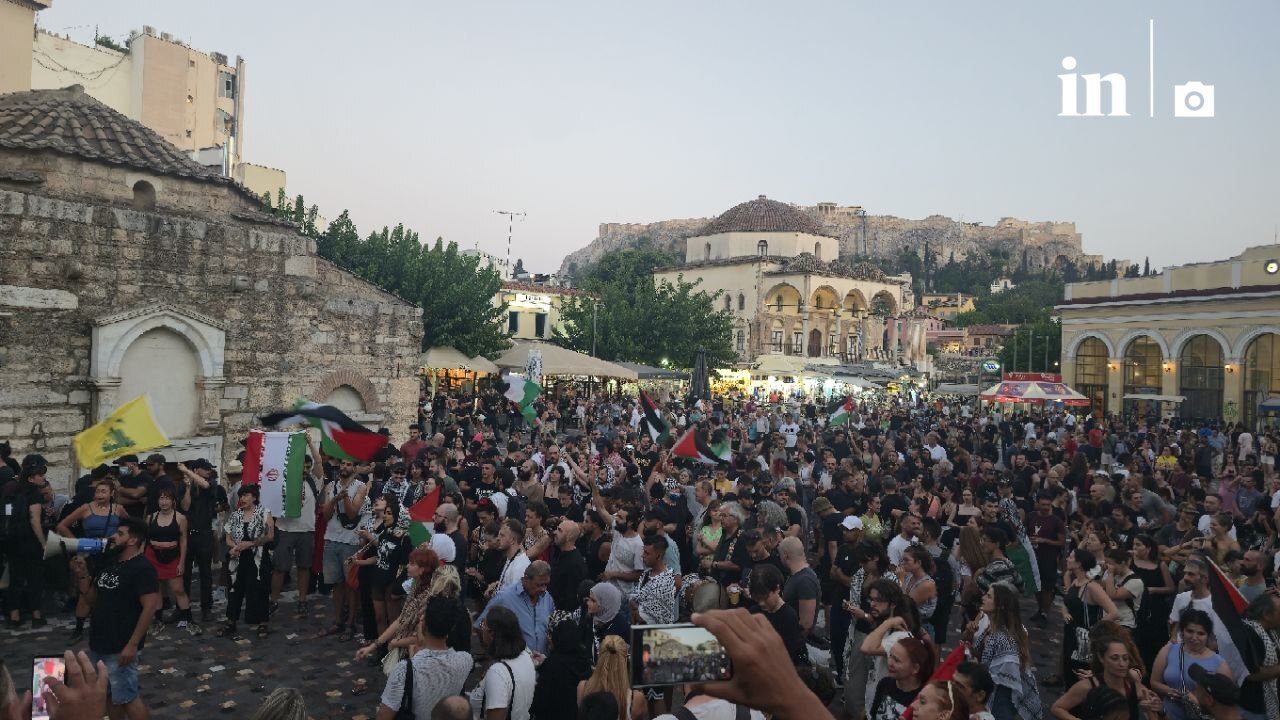 Συγκέντρωση συμπαράστασης υπέρ της Παλαιστίνης και του παλαιστινιακού λαού πραγματοποιείται από το απόγευμα της Παρασκευής στο Μοναστηράκι και συγκεκριμένα στην πλατεία Μοναστηρακίου, με τη συμμετοχή πολιτικών οργανώσεων και συλλογικοτήτων που καταγγέλλουν την ισραηλινή στρατιωτική παρουσία στη Λωρίδα της Γάζας.