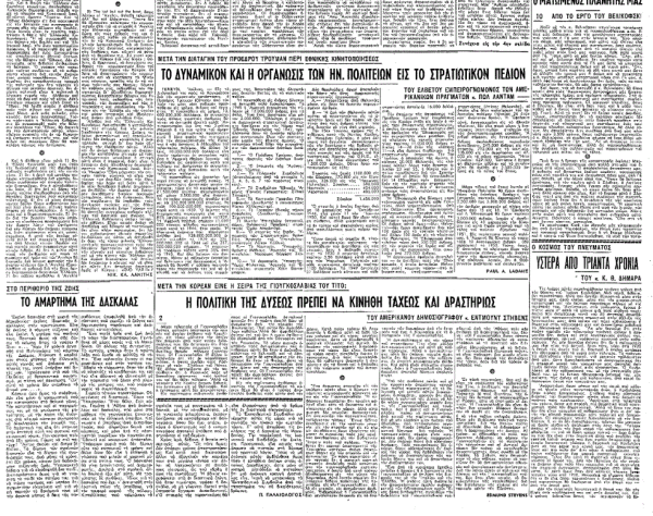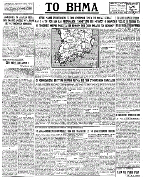 «ΤΟ ΒΗΜΑ», 29.7.1950, Ιστορικό Αρχείο «ΤΟ ΒΗΜΑ» & «ΤΑ ΝΕΑ»