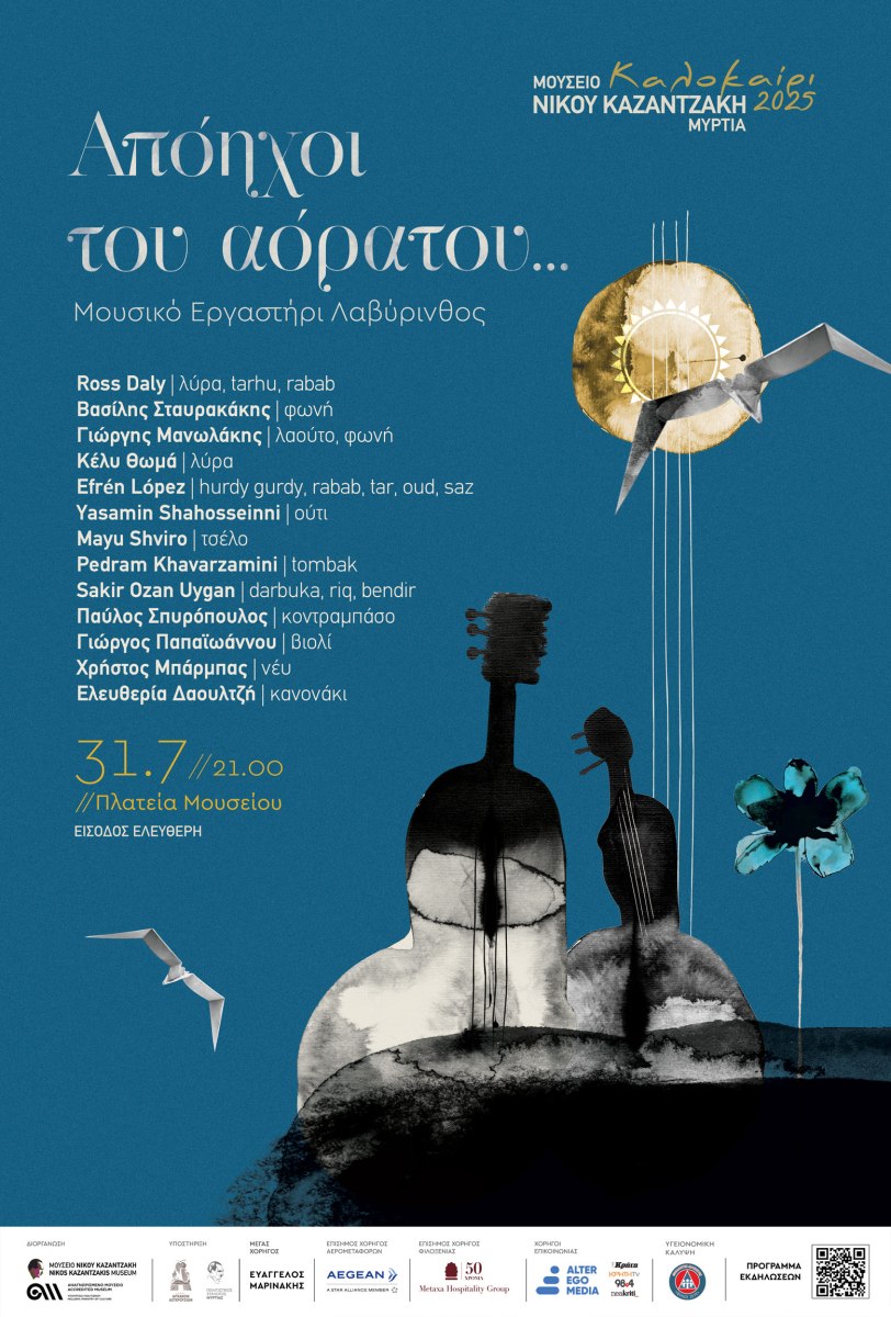 Το Μουσείο Νίκου Καζαντζάκη και το Μουσικό Εργαστήρι Λαβύρινθος, δύο κορυφαίοι πολιτιστικοί πυλώνες του Δήμου Αρχανών-Αστερουσίων, συνεργάζονται για πρώτη φορά, ενισχύοντας την πολιτιστική ταυτότητα και την ανάπτυξη της περιοχής. Ο Νίκος Καζαντζάκης με την πένα του και ο Ross Daly με το δοξάρι του, δυο παγκόσμιοι ταξιδευτές του πνεύματος και της τέχνης, συναντώνται για να υπενθυμίσουν ότι η Τέχνη δεν γνωρίζει σύνορα –ενώνει ανθρώπους, πολιτισμούς, κόσμους.